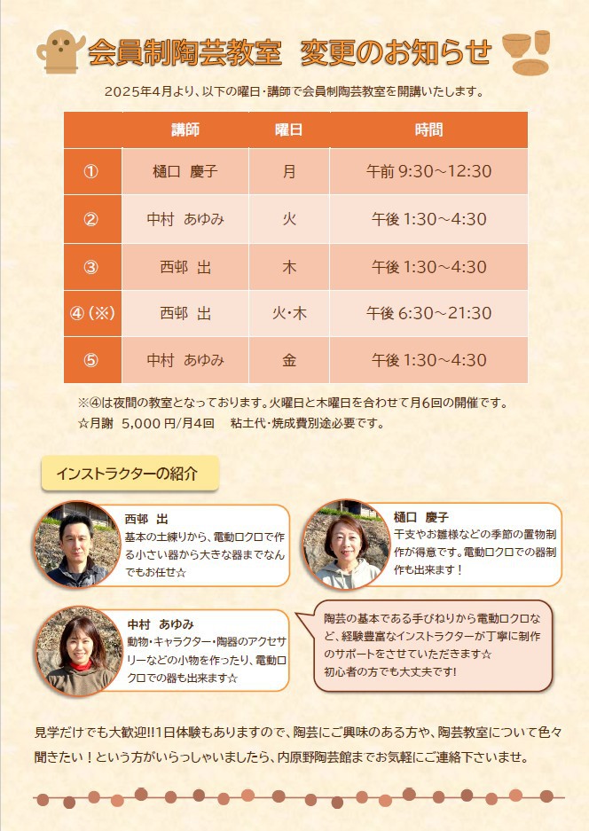 是非お誘い合わせの上、内原野陶芸館に遊びにいらしてください~~!